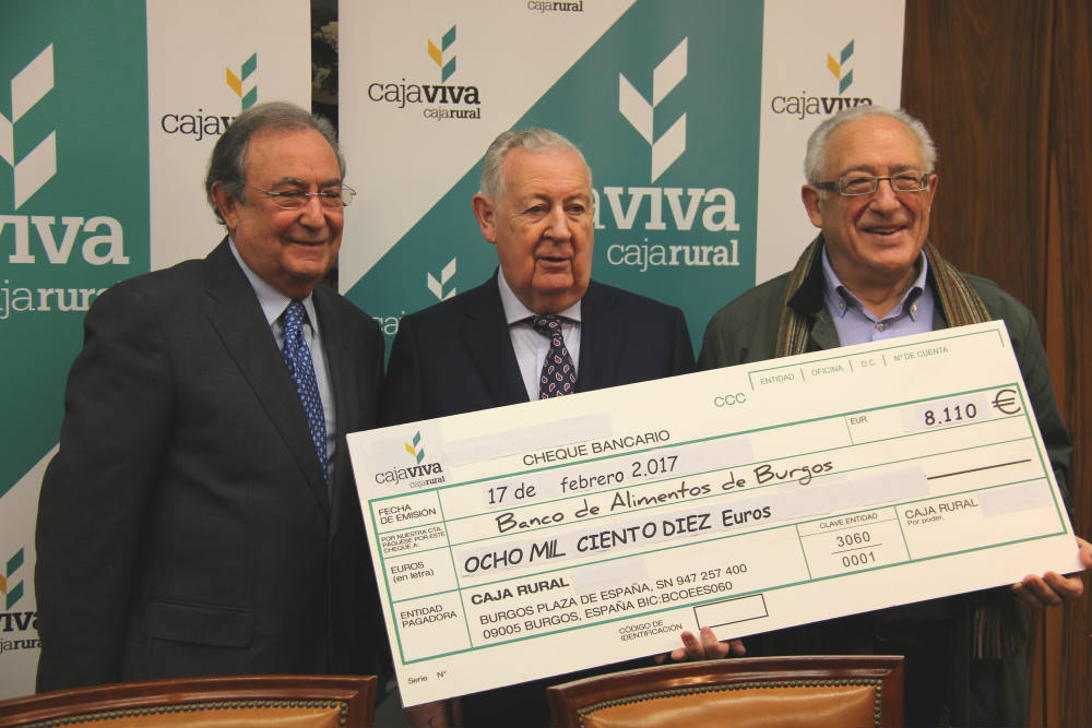 Cajaviva Caja Rural ha hecho entrega al Banco de Alimentos de Burgos de 8.110 euros recaudados con la venta de Lotería de Navidad Solidaria de 2016. Desde que se dio comienzo a esta iniciativa, la entidad bancaria ha aportado en total cerca de 50.000 euros. Pedro García Romera, Presidente honorífico de Cajaviva Caja Rural ha destacado la involucración por parte de toda la plantilla.