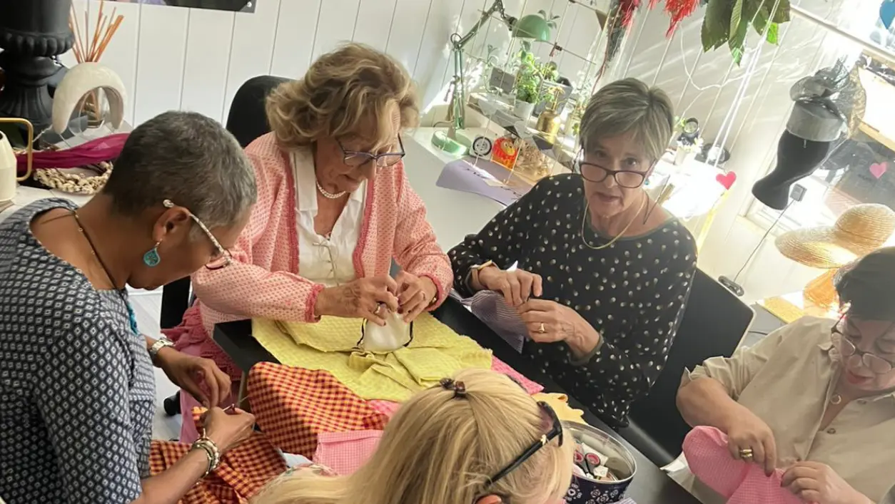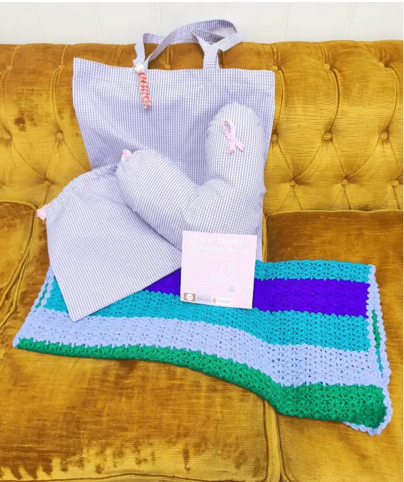 Cada primer lunes de mes, un grupo de mujeres se reúne para confeccionar cojines en forma de corazón, pequeñas bolsas para drenajes, mantitas y cartas personalizadas que se entregan a mujeres recién operadas de cáncer de mama.