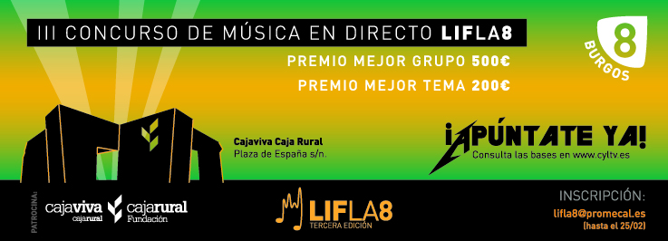 La televisión local La 8 Burgos junto con Cajaviva Caja Rural organizan la tercera edición del concurso de música joven de Burgos “LIVE ICE Festival”. El objetivo no es otro que prestar apoyo y facilitar la promoción de los grupos musicales de Burgos.