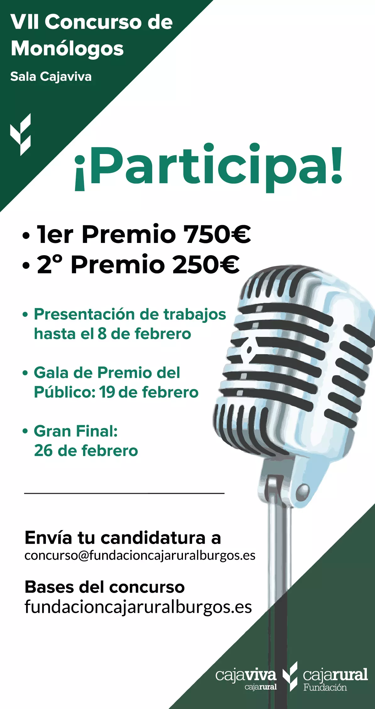 La Fundación Caja Rural de Burgos ha anunciado el lanzamiento del VII Concurso de Monólogos, un certamen que busca descubrir y premiar a los mejores talentos del humor.