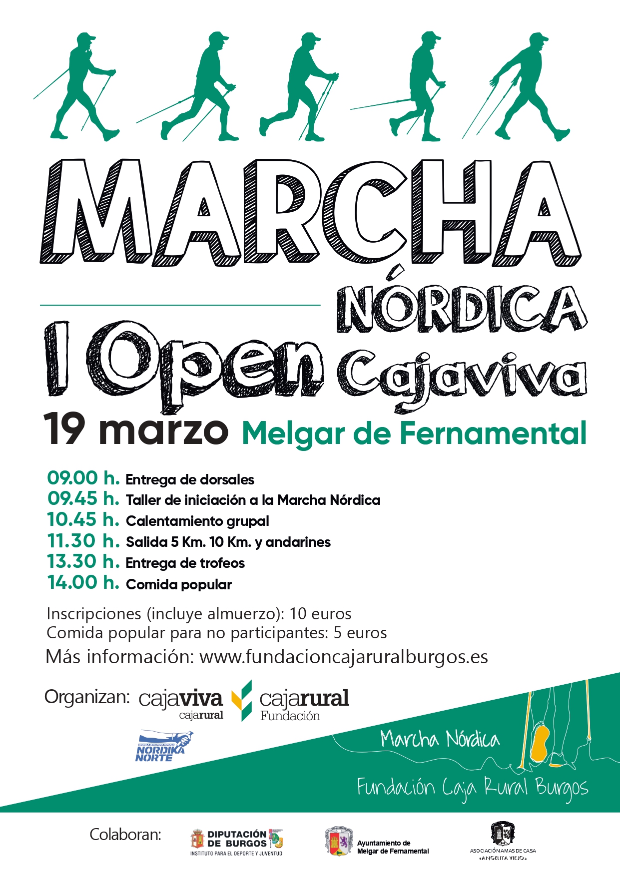 Cajaviva y Fundación Caja Rural junto a Nórdika Norte, ponen en marcha el I Open de Marcha Nórdica Cajaviva que tendrá lugar el domingo, 19 de marzo, en Melgar de Fernamental, coincidiendo con la Feria de San José de la localidad.