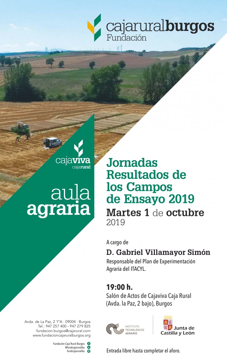 Fundación Caja Rural Burgos le saluda y se complace en convocarle a la Conferencia que presentará los Resultados Técnicos, tanto en producción como en calidad, de los Campos de Ensayo realizados esta campaña 2019.