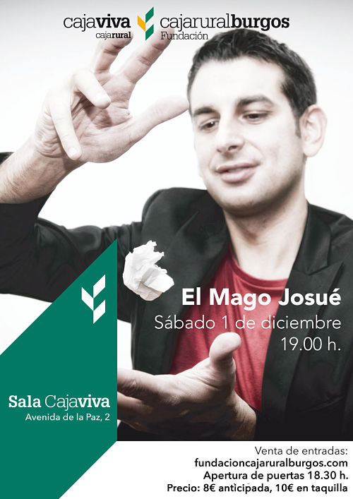 El próximo 1 de diciembre el Mago Josué llenará de magia la Sala Cajaviva en la Avenida de la Paz número 2 con su espectáculo de ilusionismo y humor. ¡Te esperamos!