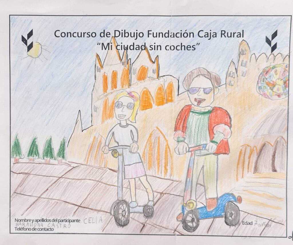 El jueves 20 de Octubre, se ha hecho entrega de los premios del Concurso de Dibujo Fundación Caja Rural ” Mi ciudad sin coches”. Los encargados de entregar los premios han sido Germán Martínez, gerente de Fundación Caja Rural Burgos, Mercedes Rodríguez, responsable de comunicación de Cajaviva Caja Rural; y Leví Moreno, concejal de movilidad del Ayuntamiento de Burgos. Los premios han consistido en un patinete, lote de libros y diploma.